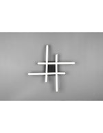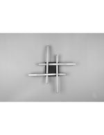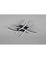 ROUTE di Trio Lighting è una plafoniera composta da piastra quadrata a soffitto, 4 bacchette ondulate in metallo intersecate tra loro a formare un quadrato hashtag di colore nero opaco e diffusori in plastica bianca.