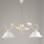 Lampadario a sospensione in ferro Avorio Oro due luci vetri alabastro Bianco 93x h34 cm