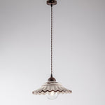 Lampadario con cavo in tessuto Nero Ruggine una luce paralume in ceramica Bianca 30x h14 cm
