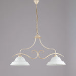 Lampadario classico in ferro Avorio Oro vetri Bianchi due luci 85x h51 cm