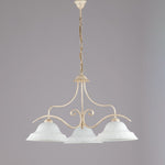 Lampadario classico in ferro Avorio Oro vetri Bianchi tre luci 30x h53 cm