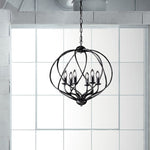 Lampadario a sospensione in ferro Nero decorazione Argento sei luci 57x h57 cm
