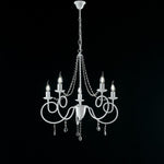 Lampadario in ferro Bianco cinque luci decorazione shabby e strass 58x h72 cm