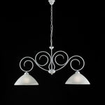 Lampadario in ferro Bianco Shabby due luci paralumi in vetro Alabastro Bianco 78x h54 cm