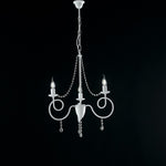 Lampadario in ferro Bianco tre luci decorazione shabby e strass 50x h67 cm