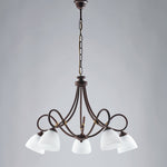 Lampadario in ferro Nero ruggine cinque luci paralumi in vetro Alabastro bianchi 69x h52 cm