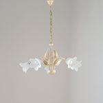 Lampadario in ferro Avorio Oro cinque luci vetri Alabastro Bianchi 68x h43 cm