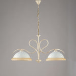 Lampadario in ferro Avorio Oro due luci vetri Bianchi e Ambra 79x h43 cm