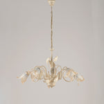 Lampadario in ferro Avorio Oro Vetri Bianchi Ambra cinque luci 73x h43 cm