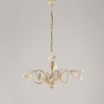 Lampadario in ferro Avorio Oro Vetri Bianchi Ambra tre luci 58x h43 cm
