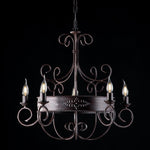 Lampadario in ferro laccato nero con decorazione ruggine 5 luci