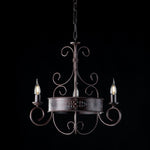 Lampadario in ferro laccato nero con decoro ruggine 3 luci con fregi