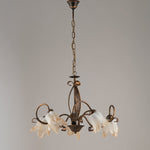 Lampadario in ferro Marrone Oro cinque luci paralumi in vetro Bianco Ambra 64x h45 cm