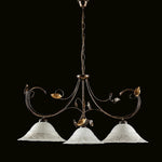 Lampadario in ferro Marrone Oro tre luci paralumi in vetro Bianco 79x h54 cm