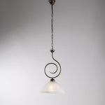 Lampadario in ferro Marrone Oro una luce paralume in vetro Alabastro Bianco 32x h53 cm