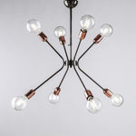 Lampadario moderno in ferro Nero rifiniture Rame otto luci 65x h67 cm