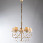 Lampadario in ferro Avorio Oro cinque luci paralumi effetto tessuto 60x h58 cm