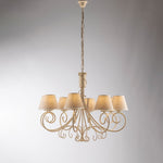 Lampadario in ferro Avorio Oro otto luci paralumi effetto tessuto 78x h63 cm