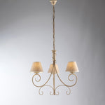 Lampadario in ferro Avorio Oro tre luci paralumi effetto tessuto 52x h58 cm