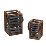 Lanterna legno 1-2 marrone con manico corda quadro cm19x19h28,5