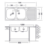 Lavello cucina due vasche con gocciolatoio dx acciaio da appoggio 50x120 cm