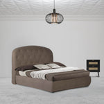 Letto matrimoniale contenitore con testiera arrotondata Button1 visone