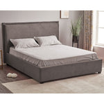 Letto matrimoniale imbottito con testiera cuscino imbottito. Colore grigio UF860-22B. Rivestimento in tessuto. Box contenitore incluso. Rete matrimoniale inclusa 160x190 cm. Misure L 170 x P 206 X H 118 cm. Spessore testiera 8 cm. Altezza longheroni piedi inclusi H 30 cm. Piedi in legno da 5 cm.