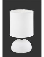 La lampada da tavolo LUCI di Trio Lighting è composta da una struttura interamente di colore bianco, con base in ceramica e paralume in stoffa bianca, diametro 14 cm. Interruttore on/off su cavo.