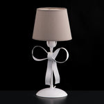 Lumetto in ferro laccato bianco shabby con paralume in pvc tortora