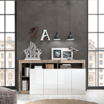 La madia Mogol 4 ante è caratterizzata dal moderno design italiano. Una riuscita combinazione di colori con elementi bianchi, frontale in laccato lucido combinato con una cornice colore pero.
