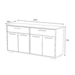 Madia multiuso quattro ante due cassetti Bianco Grigio TRUVA 140x40x h78 cm