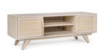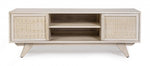 struttura in legno di mango, schienale in mdf. frontale ante in rattan. verniciatura a base di nitrocellulosa con decapatura bianca. piedini da assemblare.