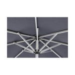 struttura in alluminio anodizzato. palo ø48mm. 8 stecche 24x14mm. telo grigio scuro in poliestere 200gr/m2 con rivestimento in pa (poliammide). base non inclusa.