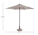 Il telo dell'ombrellone è realizzato in poliestere di alta qualità con una densità di 160 g/m2, offrendo un'ottima protezione dai raggi solari. Il colore tortora del telo conferisce un aspetto elegante e si integra facilmente con diversi stili di arredamento esterno.
