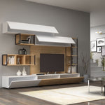 Parete attrezzata due ribalte quattro pensili Bianco Rovere TRONADOR 260x42x h210 cm