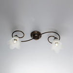 Plafoniera in ferro Marrone Oro due luci paralumi in vetro Bianco 56x26x h17 cm