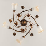 Plafoniera in ferro Marrone Oro vetri Bianchi Ambra cinque luci 70x h15 cm