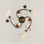 Plafoniera in ferro Marrone Oro vetri Bianchi Ambra tre luci 58x h15 cm