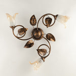 Plafoniera in ferro Marrone Oro Vetri Bianchi Ambra tre luci 59x h20 cm