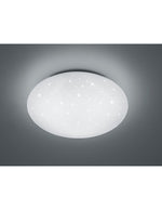 La lampada da soffitto LUKIDA di Trio Lighting ha una struttura rotonda realizzata interamente in plastica bianca con effetto stelle scintillanti glitterate.