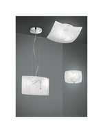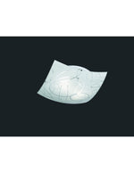 La plafoniera SPIRELLI di Trio Lighting presenta uno struttura quadrata in metallo finitura bianca e diffusore in vetro bianco con motivi decorativi a cerchi.