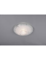 La plafoniera SANDRINA di Trio Lighting presenta un diffusore rotondo in vetro bianco granigliato.
