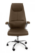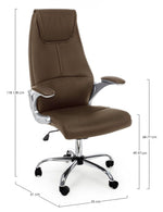 Poltrona da ufficio in ecopelle marrone Camberra con braccioli