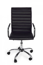 Poltrona da ufficio PERTH di colore nero dotata di braccioli e ruote con seduta e schienale in similpelle e altezza regolabile