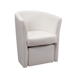 Poltrona imbottita rivestita in ecopelle bianca e pouff estraibile