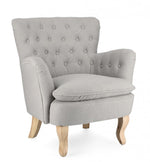 Il rivestimento in poliestere dona alla poltrona un suggestivo effetto bouclé, mentre la lavorazione capitonné aggiunge un tocco di eleganza al suo design.
