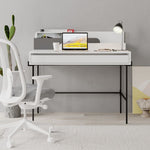 Scrivania Leila bianco con dettagli antracite con cassetto e piedi neri in metallo