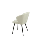 Sedia schienale avvolgente, imbottita e rivestimento tessuto effetto velluto. Colore beige con piedi in metallo nero. Larghezza 44 cm, profondità 41 cm, altezza 82 cm. Altezza gambe 48 cm, profondità seduta 41 cm, altezza schienale 34 cm. Acquisto minimo 2 pezzi. Facile da montare.