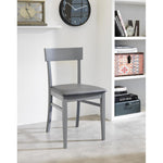 Sedia in legno laccato grigio scuro con seduta in similpelle