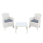 Splendido set da giardino e balcone in polipropilene effetto rattan. Composto da due poltrone con cuscini e tavolino. Materiale: Polipropilene effetto rattan Uso esterno: Resiste agli agenti atmosferici/muffe/smog/polvere. Non adatto ad utilizzo professionale Quantità: Salotto da 3 pezzi da balcone Dimensioni poltrone cm 60 x 58 x 89. Dimensioni tavolino cm 59 x 46 x 40.